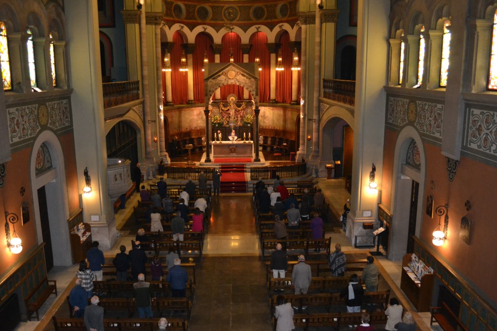 La situación de pandemia actual y las restricciones sanitarias condicionaron el aforo limitado en la nave de la iglesia.