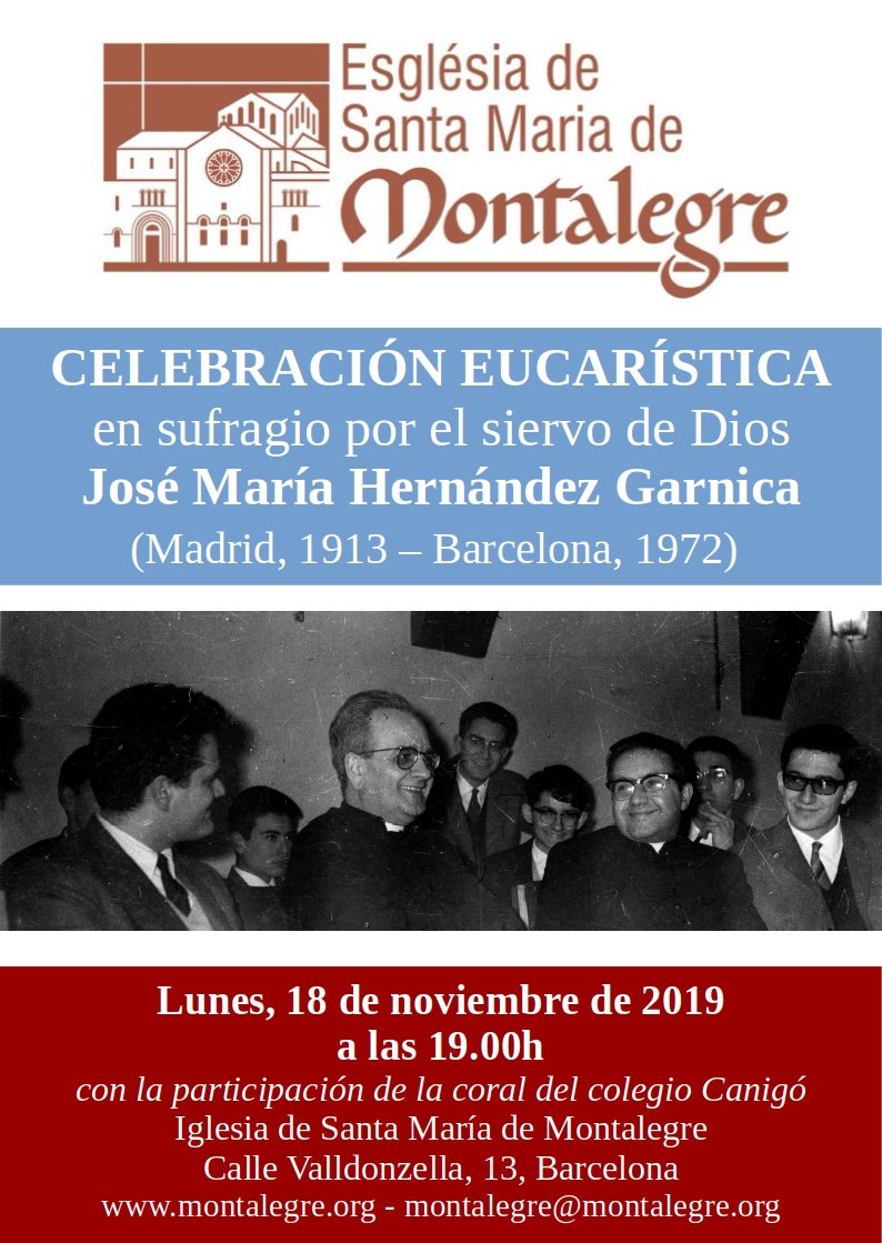 Hoy se cumplen 8 años del traslado de los restos de D. José María Hernández Garnica a su sepultura actual en Montalegre, presidida por el entonces Cardenal Arzobispo de Barcelona, Dr. Lluís Martínez Sistach. Aquí tienes el enlace de la crónica.