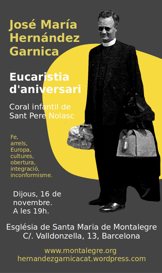 El dijous 16 de novembre, vigília del seu 105è aniversari, es va celebrar a l’església de Santa Maria de Montalegre la tradicional Eucaristia anual en memòria del servent de Déu José María Hernández Garnica. Participaran un centenar de fidels. La coral infantil de la veïna parròquia de Sant Pere Nolasc va acompanyar els cants de la celebració.
