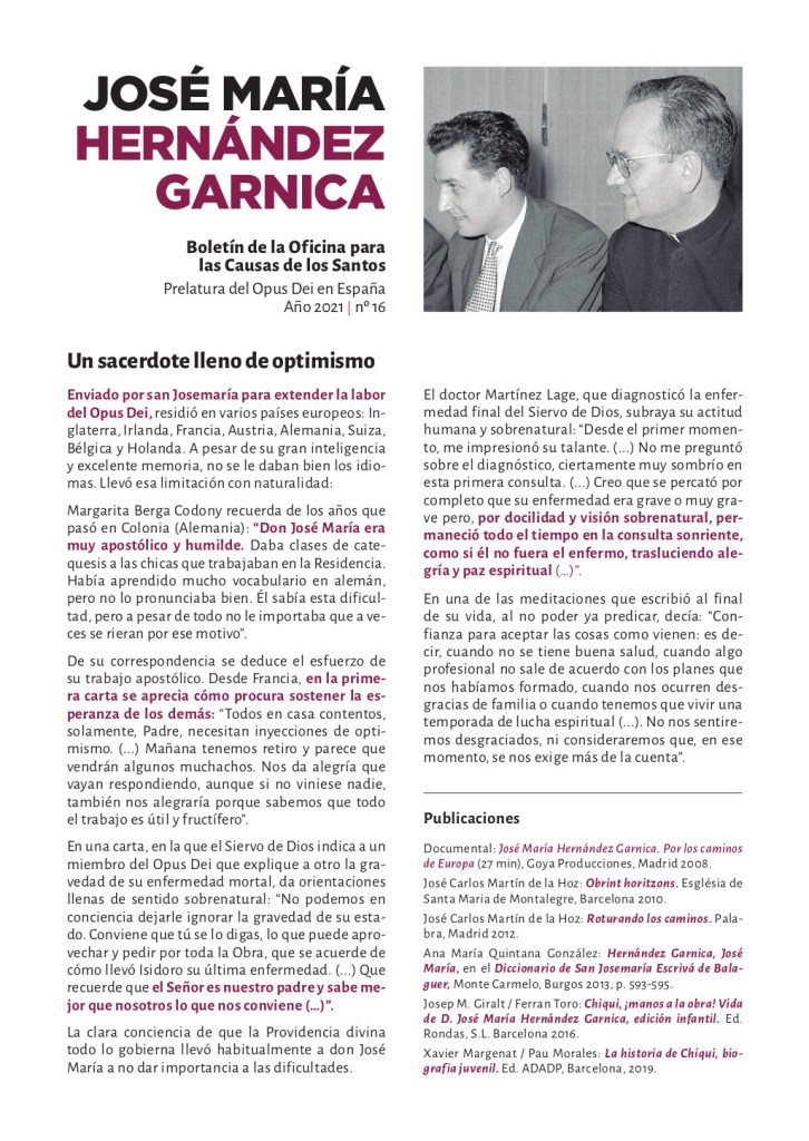 Hoy es el 108 aniversario de D. José María Hernández Garnica, que nació en Madrid el 17 de noviembre de 1913. Un buen día para leer la nueva hoja informativa que se acaba de publicar, que puedes descargar. También puedes venir a la misa que se celebrará hoy en Montalegre a las 19h, en sufragio