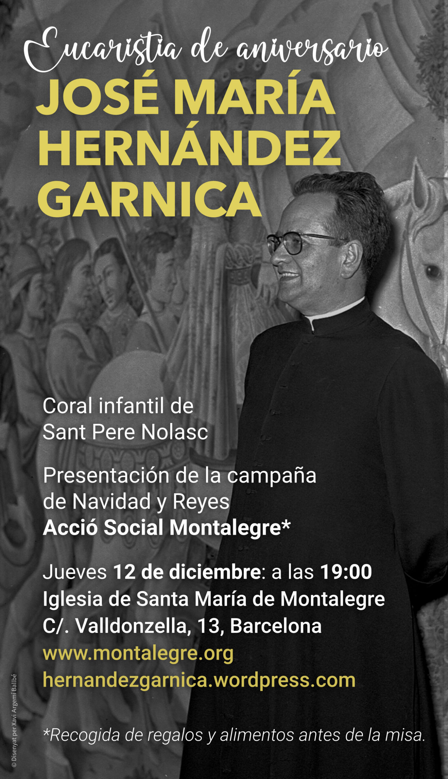 El 7 de diciembre se cumplirán 52 años del fallecimiento de D. José María Hernández Garnica. Como es tradicional se celebrará una misa por el eterno descanso de su alma en la iglesia de Santa María de Montalegre, donde se encuentra su sepultura. Tendrá lugar el jueves 12 de diciembre, fiesta de la Virgen de