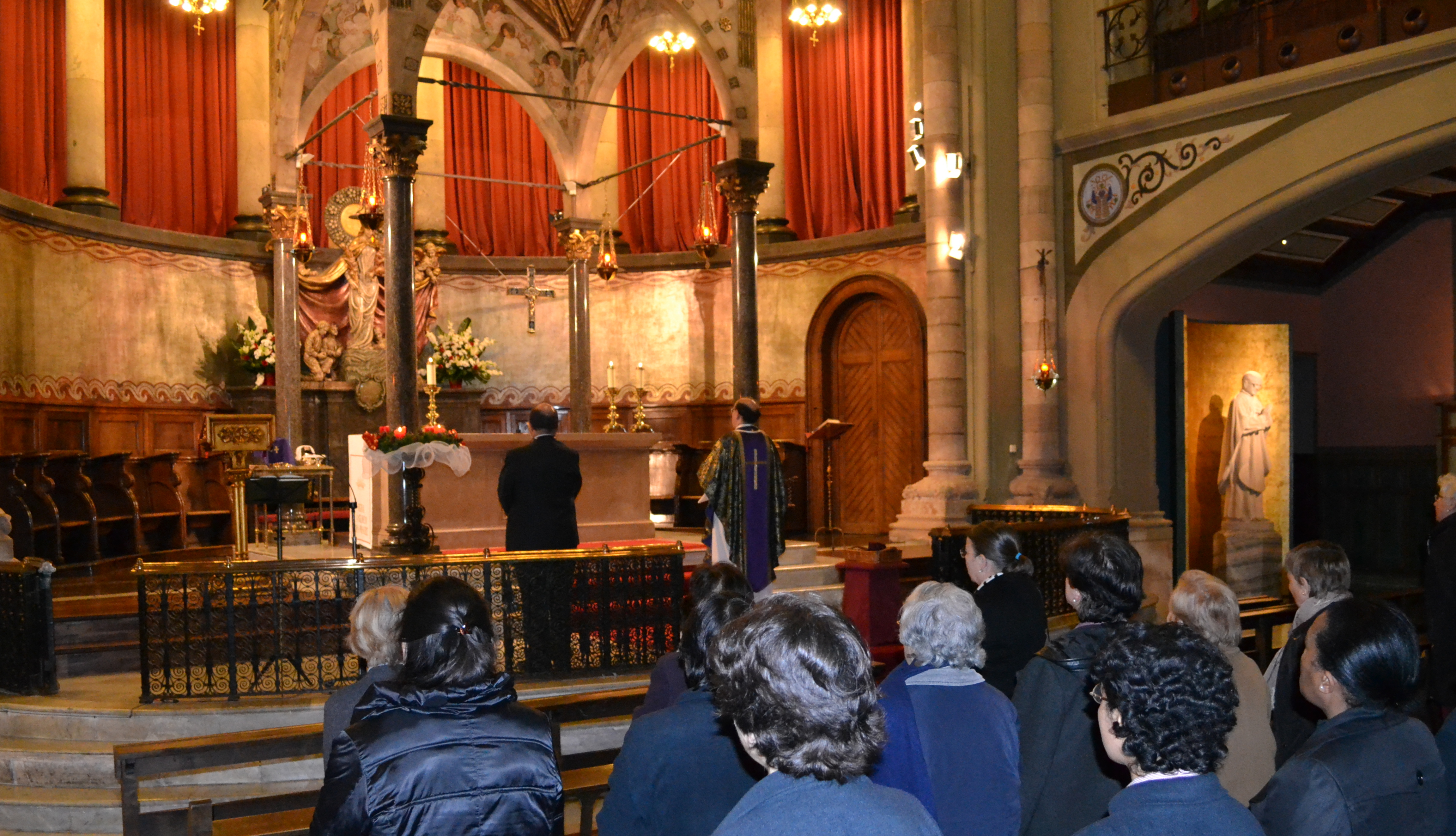 DSC_3726Celebró la eucaristía Mn. Xavier Argelich, el nuevo rector de Montalegre. En la homilía destacó una de las cosas que más le había impresionado al incorporarse a Montalegre: la arraigada devoción que existía a D. Chiqui entre los feligreses, muchos de los cuales se acercan a pedirle favores ante su sepultura, en la capilla del Santísimo. Y, especialmente por la mañana, cuando hay menos gente, después de orar y poner bajo su protección pequeños y grandes «encargos», se acercan a la lápida y besan, como para demostrarle la devoción que se le tiene.